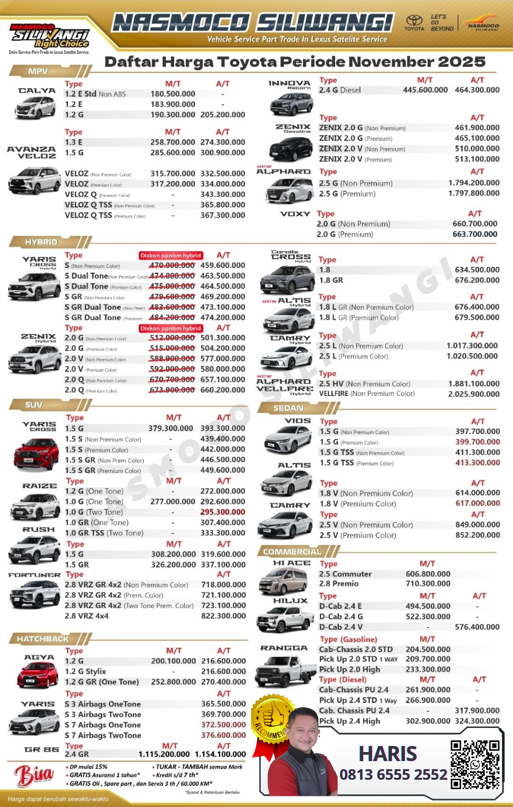 Saya HARIS Sales Senior di Toyota Semarang Siap Melayani Pembelian Mobil Toyota terbaru all type, seperti :